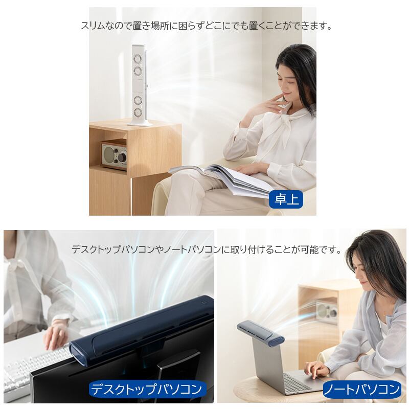 このファンは、静音設計を採用しており、オフィスや自宅での作業中でも気になる音を抑えます。3段階の風量調節により、自分好みの風を選ぶことができるため、季節を問わず快適に過ごせます。また、角度調整が可能で、風の向きを自在に変えることができるのも特長です。