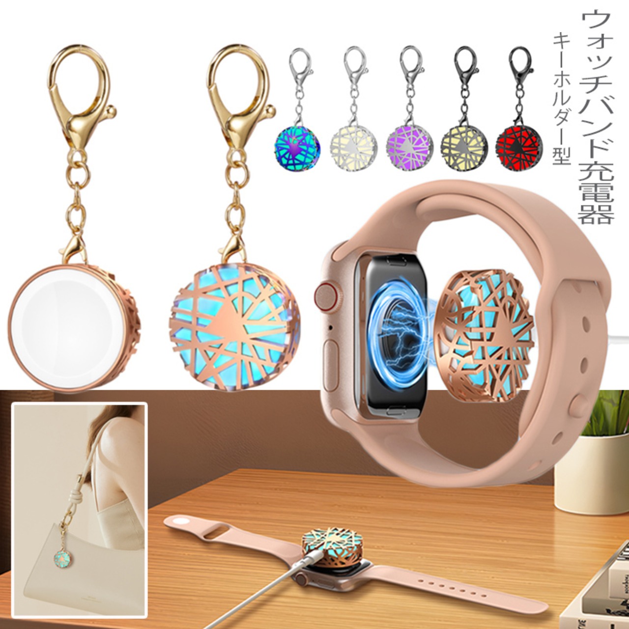 初回送料無料 動画あり キーホルダー型充電器 ウォッチバンド充電器 持ち運び type-C 軽量 for Apple Watch