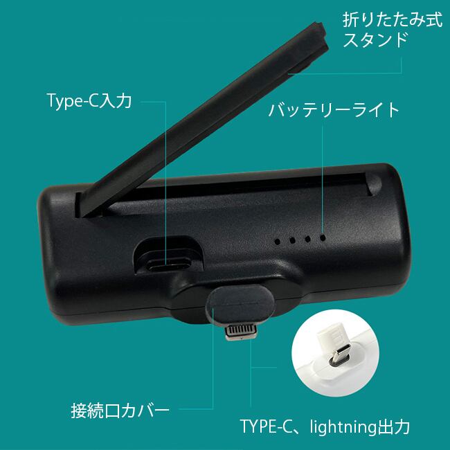 初回送料無料 PSE認証済 モバイルバッテリー 携帯充電器 5000mAh ライトニング タイプC 軽量 ミニ 小型